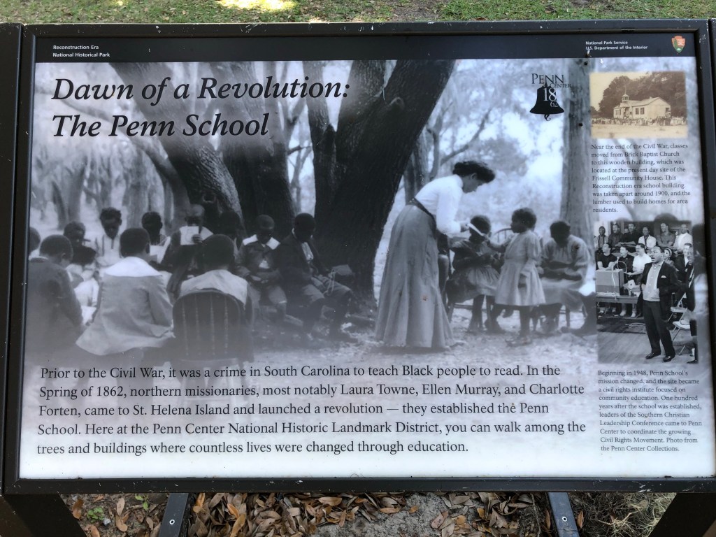One of the most interesting days of our trip was spent with our friend and fellow photographer from California Lew Watts. We first visited a Gullah inspired public library in St. Helena, SC which is located an hour and half drive south of Charleston. The Gullah/Geechee people were freed from slavery during the Civil War by Union troops and developed their own distinctive language and food based on their African traditions. The island of St. Helena was a center of their culture. We then visited the Reconstruction Era National Historic Park in St. Helena which included a place called the Penn Center. During the war, Quaker missionaries came from the North to help the newly freed slaves with the long process of gaining literacy and education and pride in themselves and their heritage. Penn Center was where their first school operated and the National Historic Park there today was inspirational. Back in Charleston, we enjoyed a glass of wine together as Lew shared with us some of his recent work and we showed him our album.
