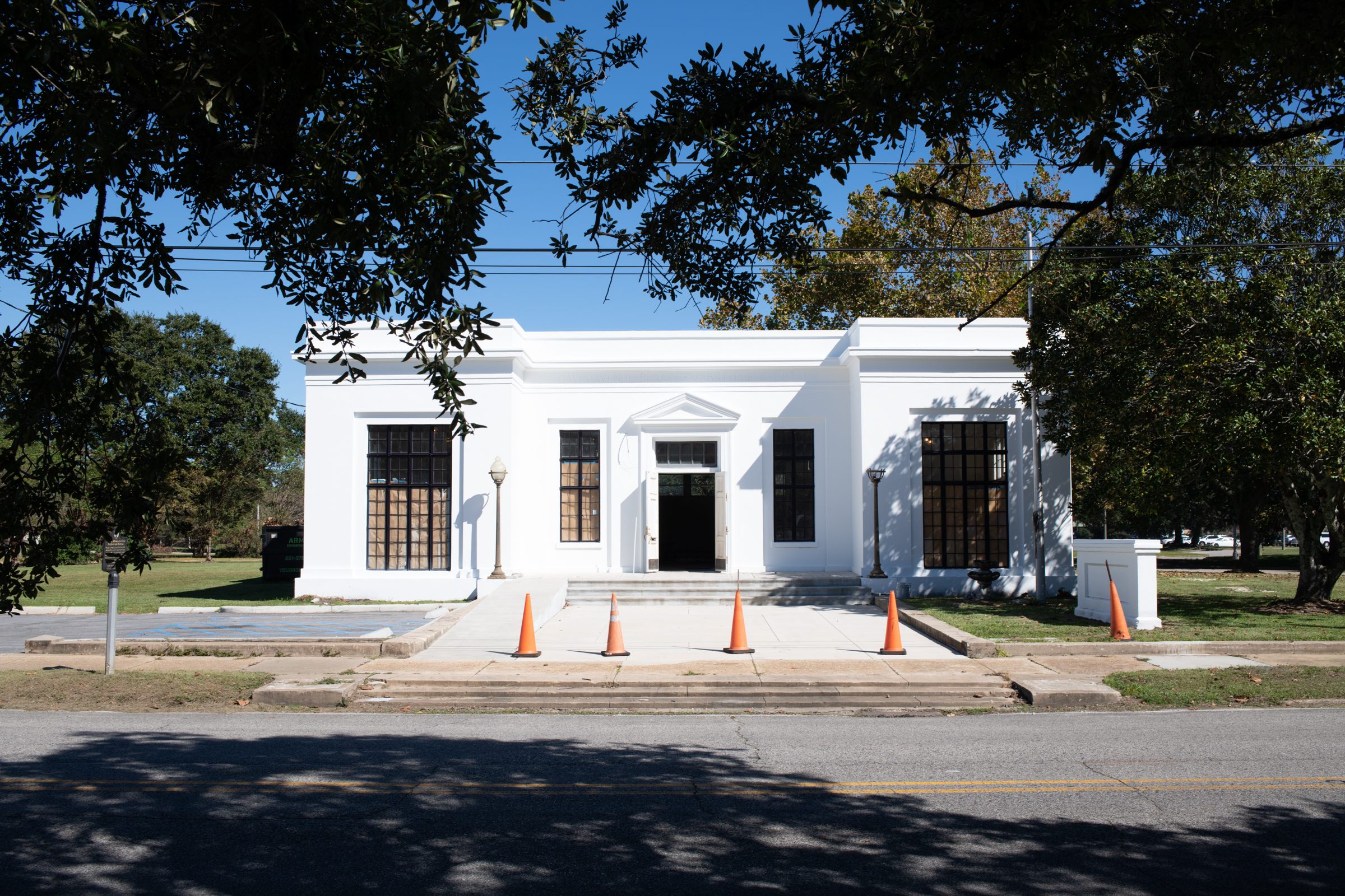 Our most action-packed day was when we photographed three different sites in two different states in one day. We drove to the Gulf Coast city of Mobile, AL and photographed the National African American Archives in a formerly segregated library. The site was closed for renovation, but I was told by a woman there that the new archive would contain, among other things a digital archive of all the local Black newspapers when the building re-opens.