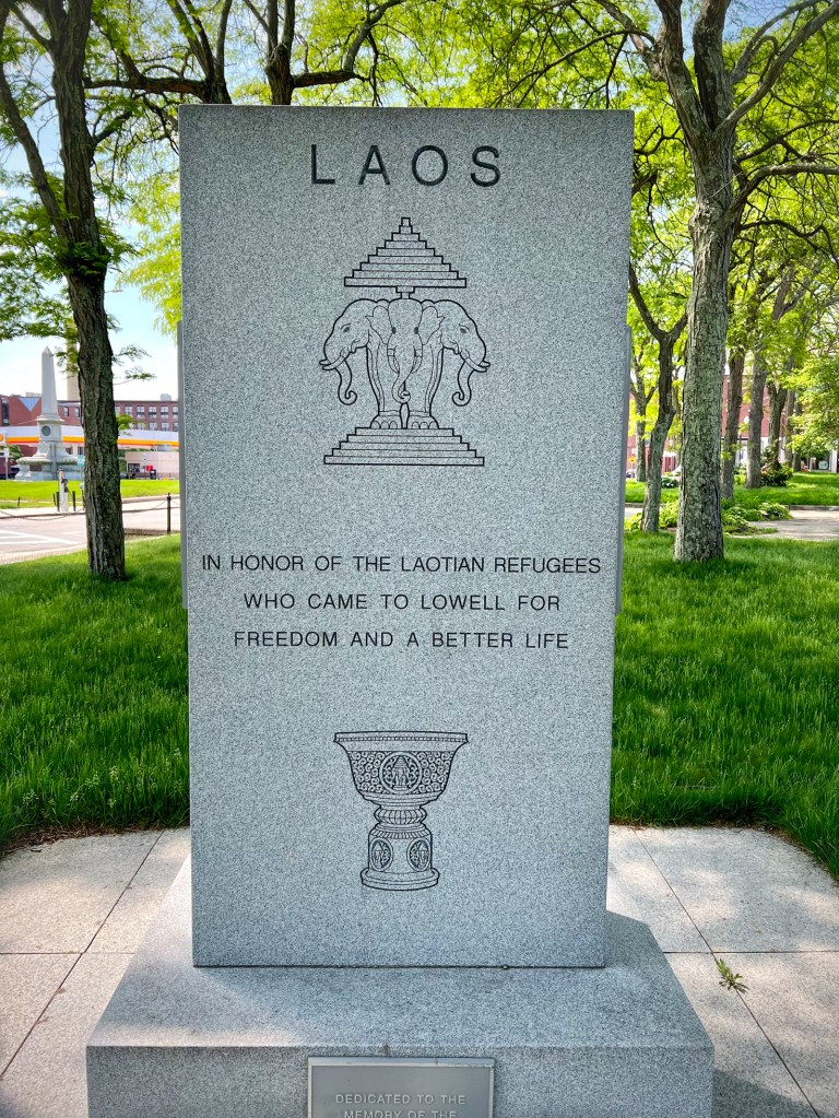 After the mills closed, the economy of Lowell crashed, and it became a post-industrial wasteland. The National Park Service and the local, state and federal governments initiated a heroic effort to revive Lowell. It is still a work in progress. At the wonderful public library was a monument to the Laotian refugees that flooded the area after the Vietnam war and became the next wave of new immigrants to the area. It was wonderful to see in a coffee shop in an old mill a southeast Asian man and an Anglo woman singing bluegrass to the urban pioneer families that are trying to breathe new life into this old town.